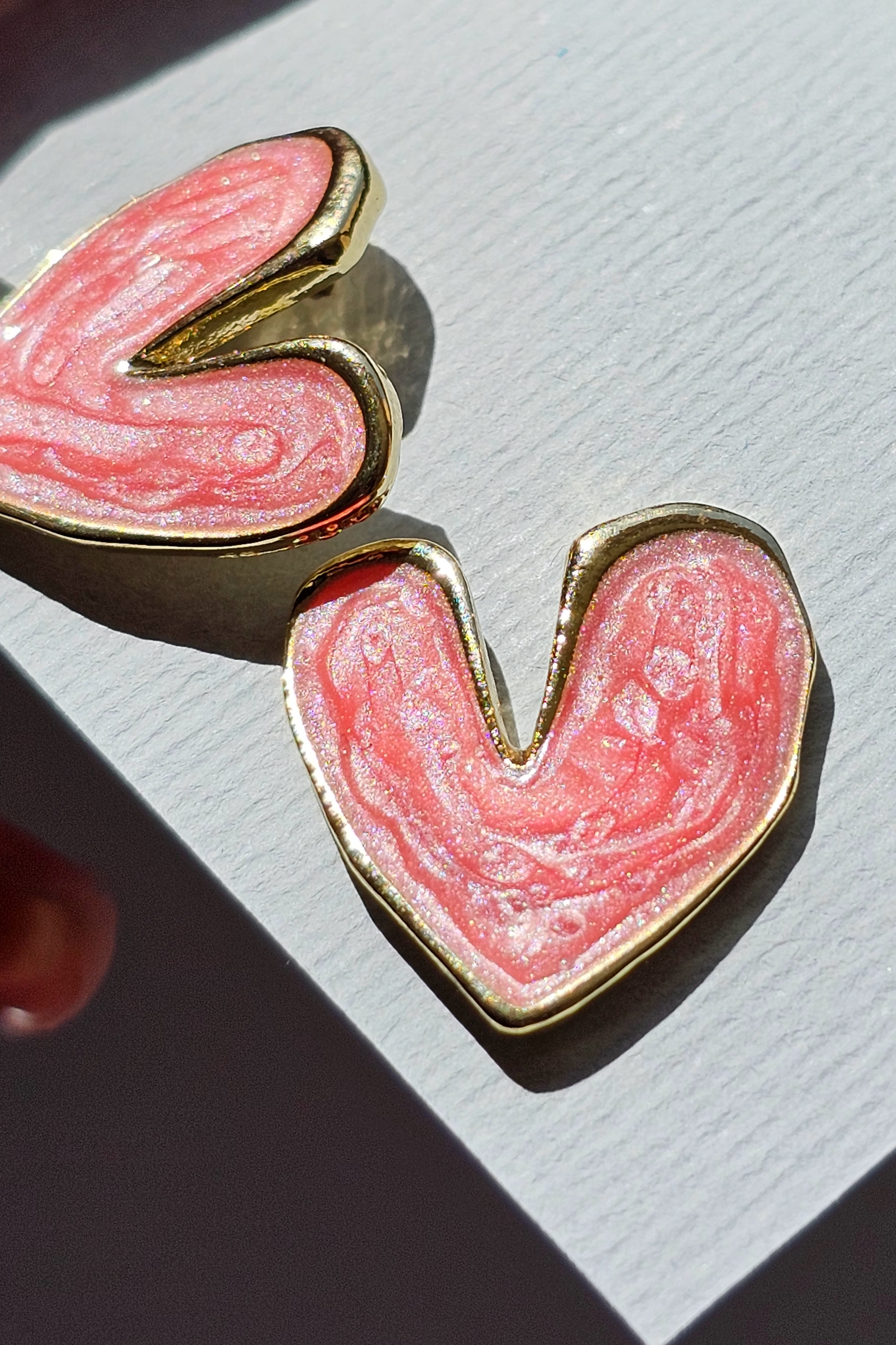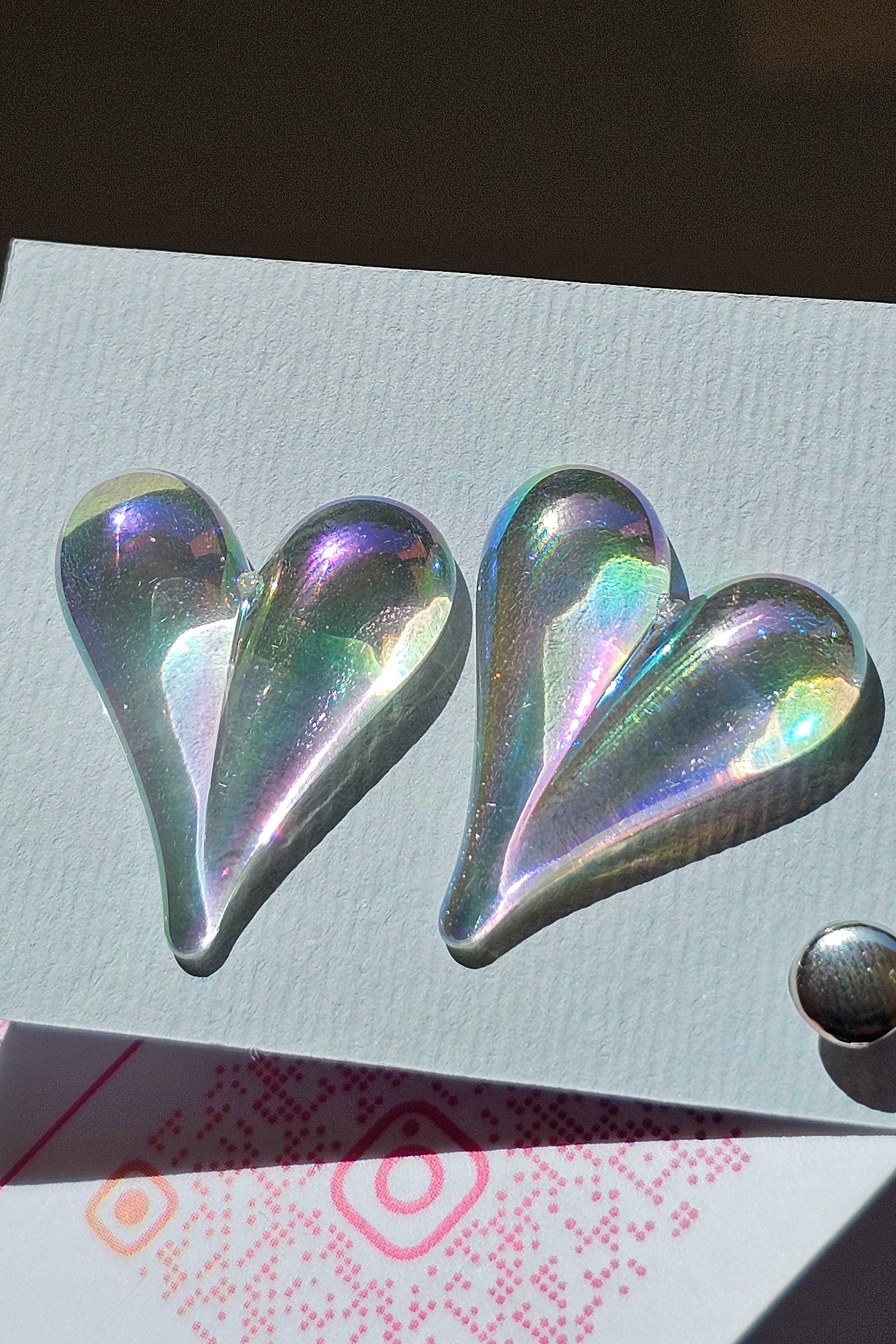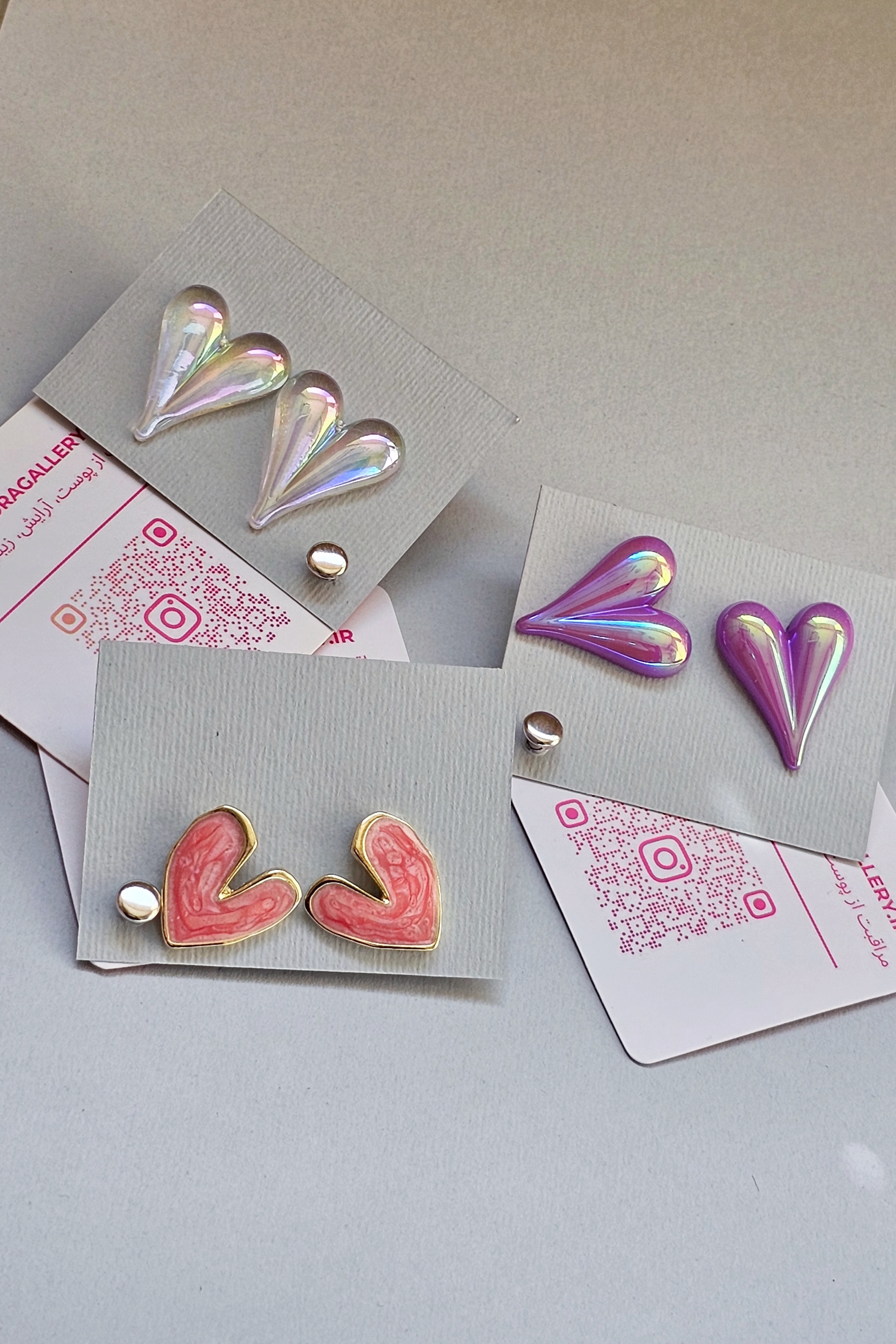 گوشوارههای قلبی دوتا رنگ کرومی داره یکی قرمز مینا کاری شده هر سه تاشون خیلی خاصه بهترین هدیه میشه🤩💜🩷❤️